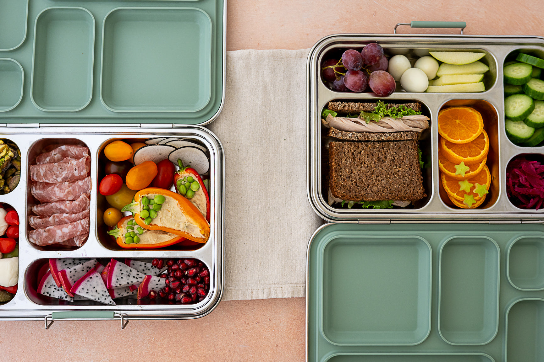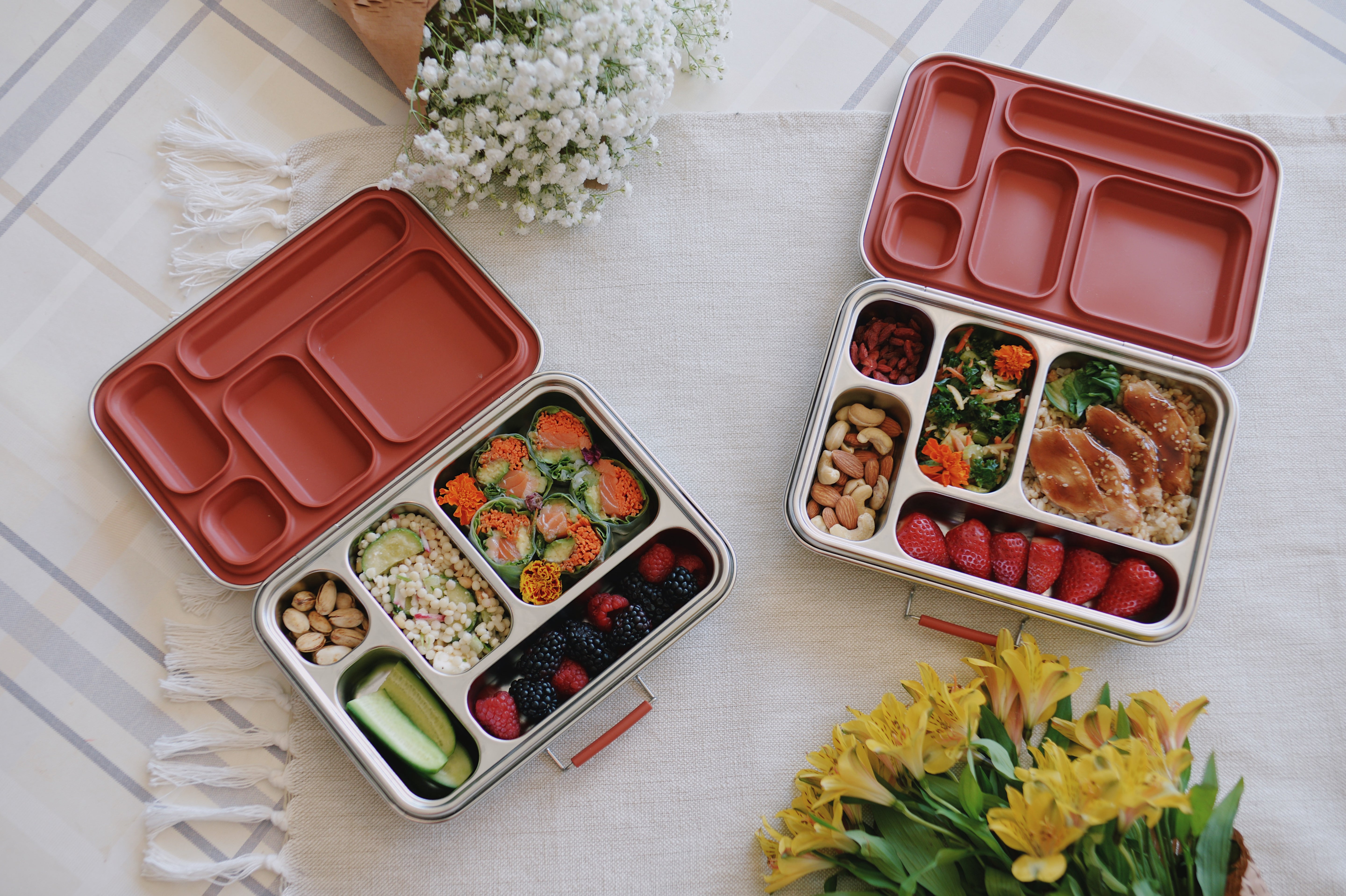 The Nourish Box Bundle includes two of our signature 5-compartment stainless-steel lunchboxes — perfect for siblings, weekly meal prep, or keeping one ready while the other’s in the wash.