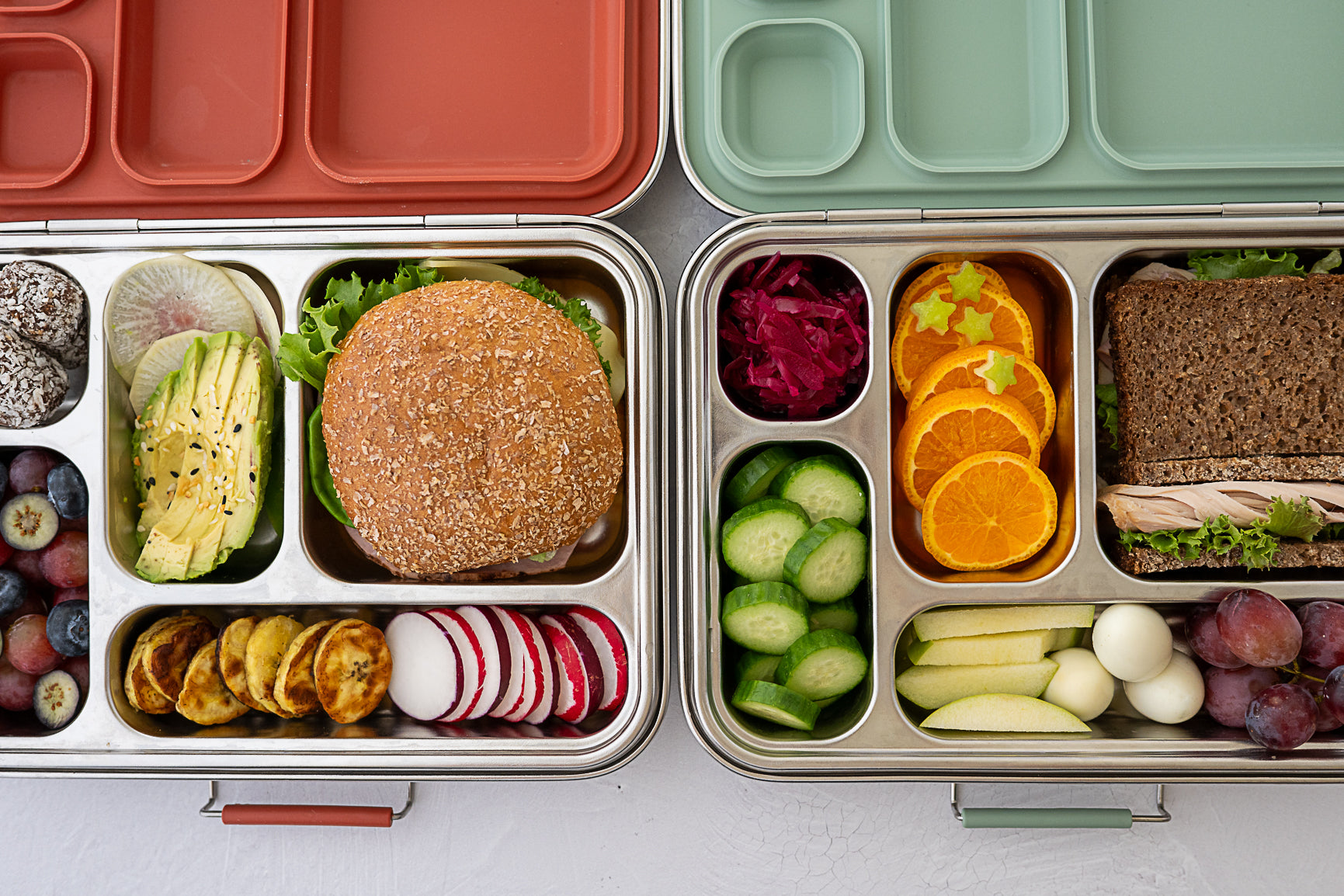 - Stainless steel construction naturally retains temperature — keeps food cooler or warmer slightly longer than plastic (not a thermos)